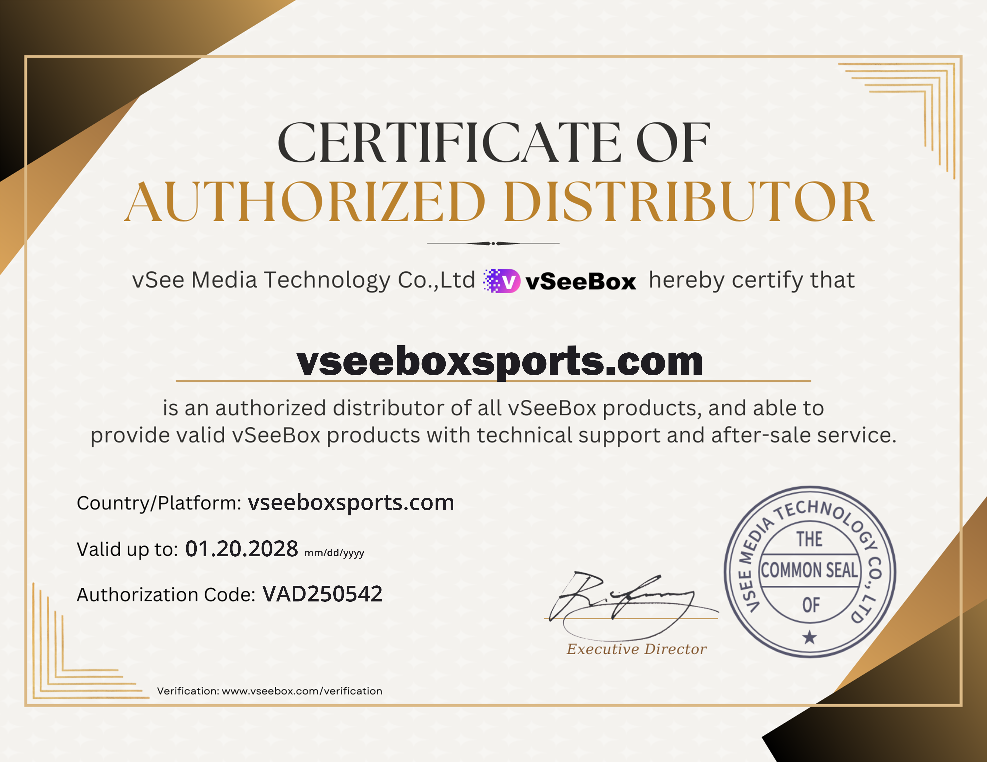 vseeboxsports.com is the officially authorized and certified distributor of vSeeBox in the United States, serving as the brand’s exclusive direct online store in this region. Every vSeeBox product sold on our website is 100% genuine and supplied directly through authorized channels, backed by official authorization certification.